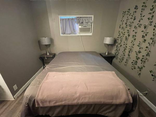 Can be a furnished with a queen size bed, or unfurnished.