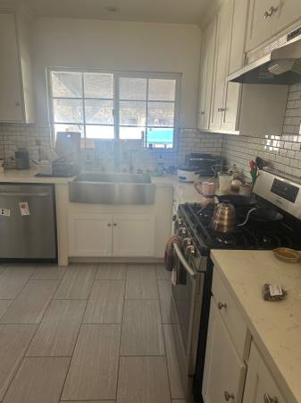 Mia (they) and Andis (he) are looking for a month-to-month roommate in our 2 bedroom house in el sereno/university hills. We have two cats and a husky who sheds quite a bit but we have lots of de-furring accoutrements. We can take another dog (who likes cats) but no more cats. We have a large enclosed yard. Easy street parking. Mia has a severe gluten intolerance so ideally it’s someone who can be very conscientious about cross-contamination, or who also doesn’t eat gluten, or doesn’t cook, but we've never had an issue figuring it out with roommates. Mia mostly works from home, and Andis is often working long hours on set. We smoke weed inside but not cigarettes and would prefer a non-cig-smoking roommate. The room is pretty big with a wall of closets. $1300 utilities included. Fully furnished, but furniture can be removed if you have your own. We have a washer and dryer, a dishwasher, and central air. Easy street parking.