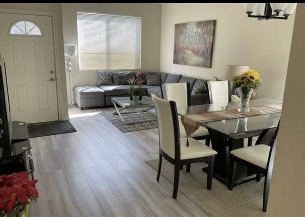 This is a month-to-month rental with a minimum stay of 3 months and a one-month security deposit required upon move-in. The rental is for a fully furnished room in a newly built 5-bedroom, home located in North Hills, Ca.