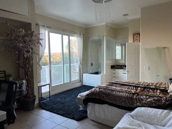 Hello ! I beautiful master bedroom huge , in a mansion on a hills with a view, jacuzzi , huge balcony ,
