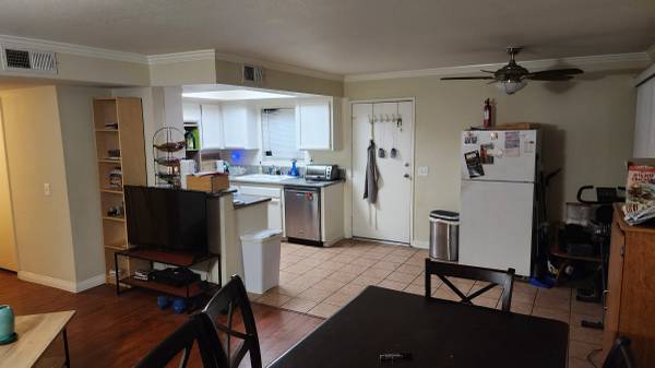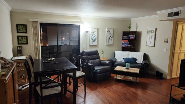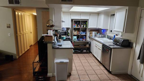 It’s a three-bedroom, three-bathroom apartment on the top floor of the building located near Van Nuys Blvd & Plummer St in Los Angeles.