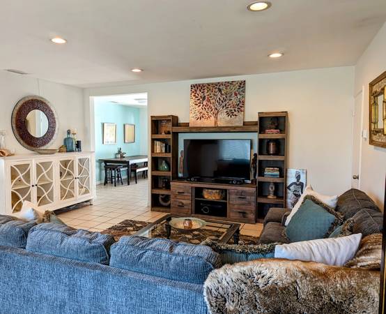 My California ranch-style home is warm, inviting, and centrally located. Each room is thoughtfully designed for style and comfort. Whether you have family in town, visiting family, or need a change of pace.