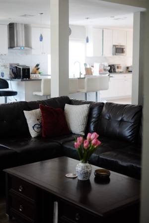 I am renting one large Bedroom with a private en-suite bathroom and oversized closet in a spacious 5 bed/5 bath single family home. You will have about 360 sqft of private living space, along with about 900 sqft of shared space. Occupying the other rooms are kind & respectful working professionals. For your convenience, we are offering this room completely furnished. We have flexible rental terms to suit your needs, from a short term month-to-month lease to a long term 1 year lease. This home was fully remodeled a few years ago. It features an open floor plan with oversized kitchen, with 2 full size refrigerators, and a laundry room.