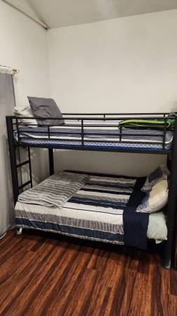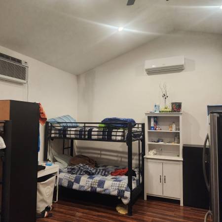 Recamara espaciosa para compartir, ideal para estudiantes o personas Solas. Recamara con 4 literas para conpartir, con closet indidual y su propio baño. El costo es de $650 dl. Por mes y un deposito de $650 dl. Todas las utilidades estan incluidas. Tienes que pagar primer mes y ultimo mes de renta mas el deposito. Para mas detalles llamar al show contact info