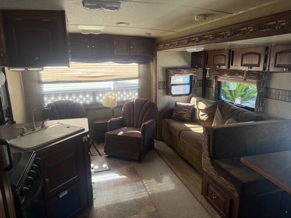 Selling 2014 forest river Rockwood Lite It’s 27 FT Fully Contained Has Full Kitchen Stove Refrigerator Oven Microwave Has Full Bathroom Shower Sink Toilet Double Door Has 2 Electric Slide Outs Electric Awning Power Jacks All Appliances Work Has Good Tires Clean Title Registration Good Till Next Year