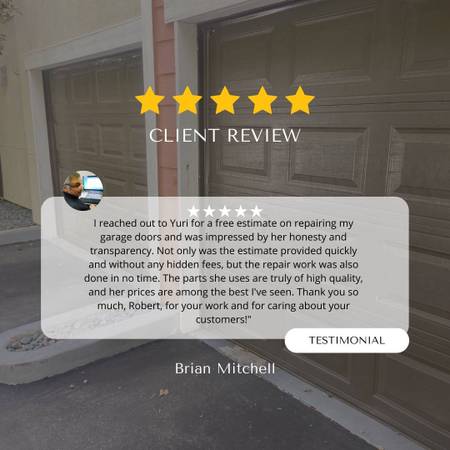 I’m a licensed independent garage door technician with over 5 years of hands-on experience and more than 1,000 garage doors successfully repaired across all types and brands.