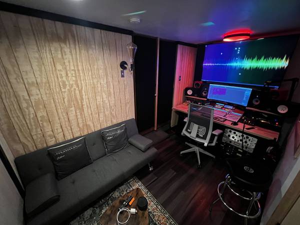 "DR.WOOD" IS FINISHED LOADING in the equipment for his recent Little quaint and cozy 16'x18' Residential Garage Conversion, Control Room and Live Room Proffessional Home Recording Studio.