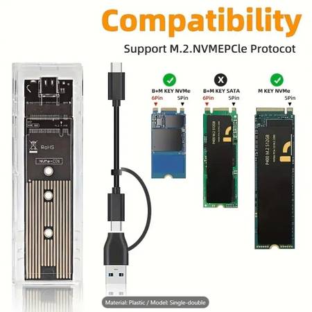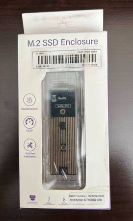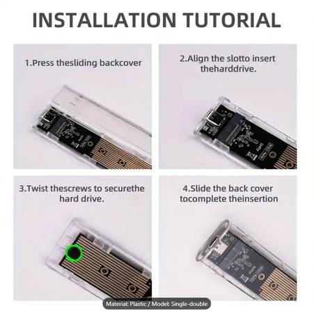 Brand new 10Gbps M2 NVME SSD Enclosure - Ultra-Fast Single Protocol, High-Speed USB Type C, Compatible with PCI-E M2 SSD - Crystal-Clear Transparent External Enclosure, Durable Hard Disk Box, Sleek Clear Design. Pictures shown in this ad are of actual item for sale.