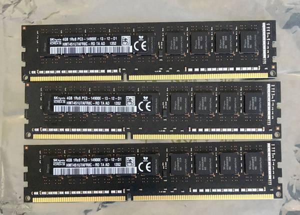 SK Hynix 12GB Lot of 3 x 4GB DDR3 1866MHz PC3-14900E-13-13-D1 RAM Memory ECC Mac Pro - Pre-owned (WORKING) OEM RAM pulled from MacPro Cylindar 'Trash Can"