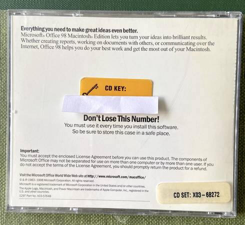 Vintage Microsoft Office 98 Macintosh Edition w/ CD Key