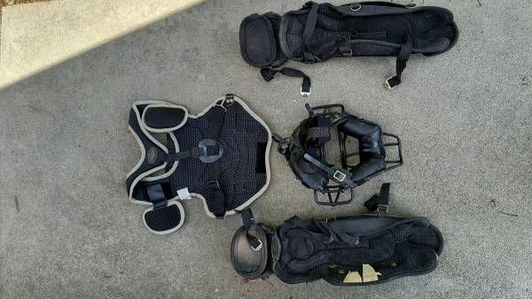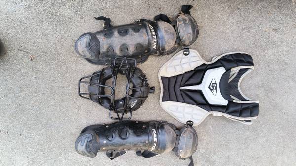 Baseball / Softball Catchers Set for Age 9 - 12, $75 Designed for baseball / softball Including of Catcher's helmet; Chest protector; Leg guard and knee pads. Good condition!