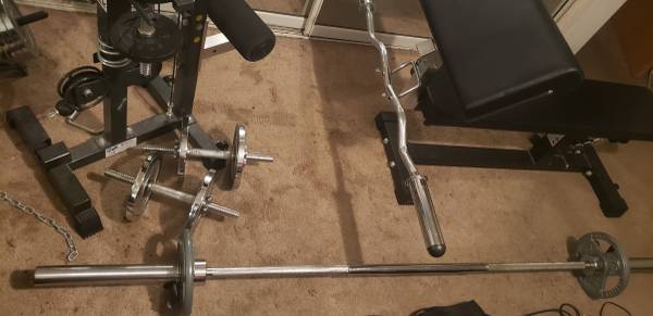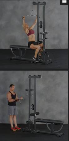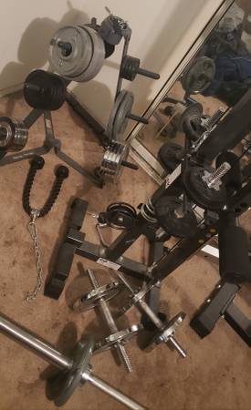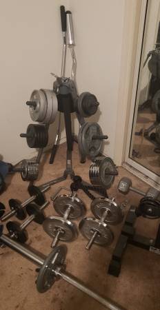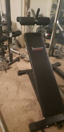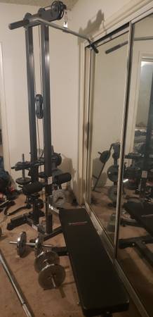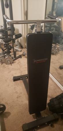 IRON MASTER BENCH/PULLEY SYSTEM - WITH WEIGHTS. Everything in pictures is included. This equipment/weights package would cost almost $2,000, without adding tax and delivery costs). Already assembled. Bench and pulley system hardly used. Will sell for $1,150. No delivery.