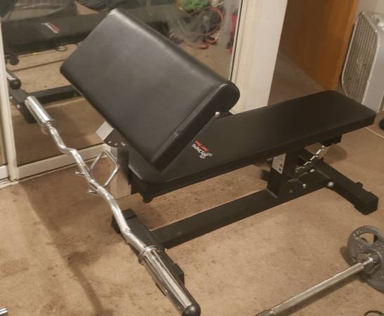 Bench is very sturdy, max weight rated to hold 1,000 pounds (in flat position). It has many other angles/positions; flat/incline/decline/vertical for dips.
