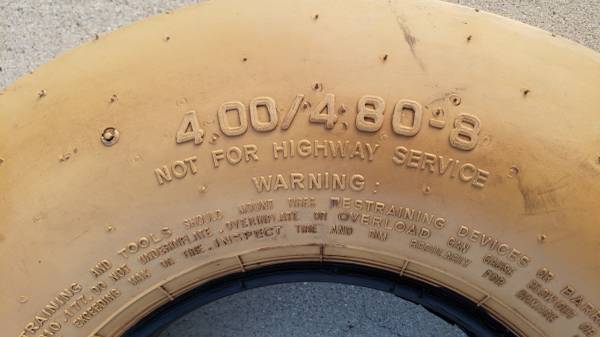Pitching machine tire for Jugs or other brand pitching machines. Selling for $50. It has never been used or mounted on a rim. It is a non-marking rubber tubeless tire made in the USA by Titan Tire Co. The tire size is 4.00/4.80-8. It is a special service tire and not for highway use and is designed for pitching machines. It is designed to be inflated to 17 PSI for pitching machines. Tires like this sell new online anywhere from around $80-$125 each. If you are reading this posting it’s still for sale. I will delete this posting when the item is sold. Call landline 8 one 8 - three 6 eight 8 six 0 seven (no texts) or email back with your phone number if you're interested and I will get back to you. No scammers need reply back. Thank you.