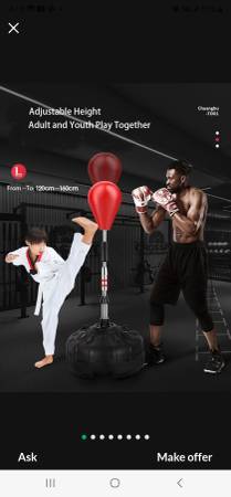 $80 BOXING SPEEDBALL BRAND NEW IN BOX NEVER USED REFLEX SPEEDBALL ADJUSTABLE HEIGHT EASY TO INSTALL TOOLS COMES INSIDE BOX YOU CAN ADD WATER OR SAND ON BASE