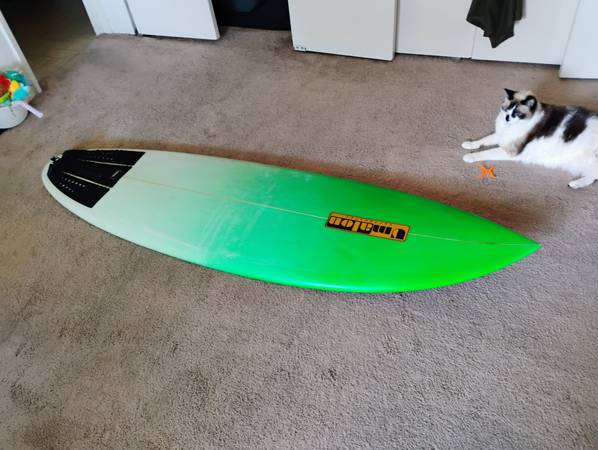 This is a custom Futures 5 box Poly board shaped very similar to the Firewire Sboss. It is in very good shape with small percentage of top pressure dings. I really like the shape which has the following dimensions... 5'10" x 19 1/2" x 2 9/16", 31.0 Liters. Also has a futures tail pad. This is a great price for this type of board. Check it out and you will agree. Cat not included!
