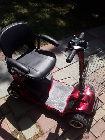 4 wheels medical scooter. Speed control Lights Horn New batteries Auto braking Swivel seat Near new condition Little tear on set Comes with charger and key