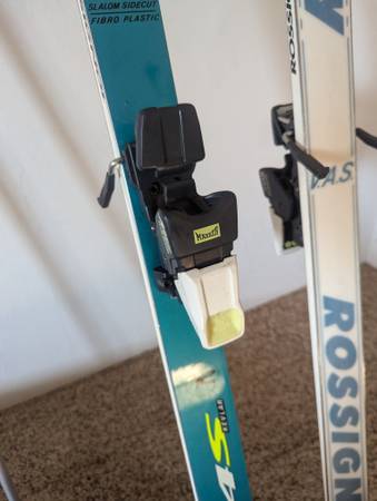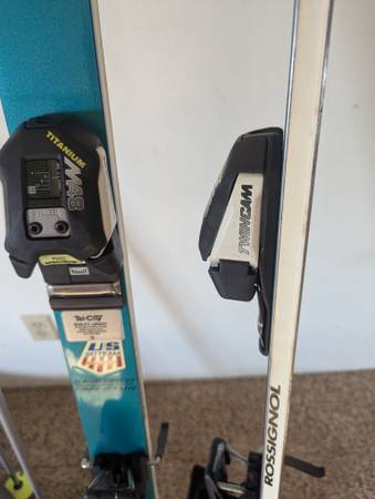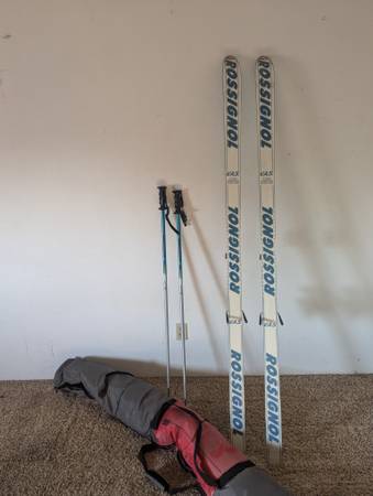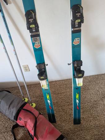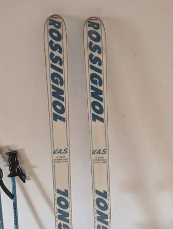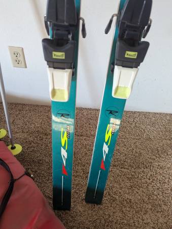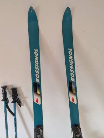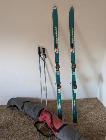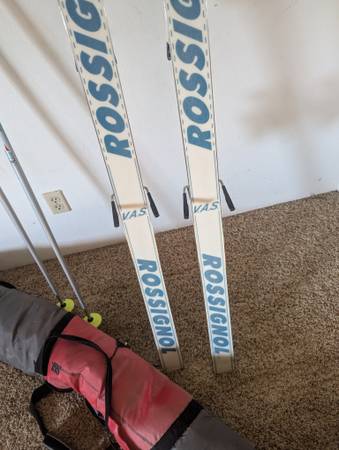 Rossignol skis, Marker bindings, with Rossignol poles and carrying case in very good condition.