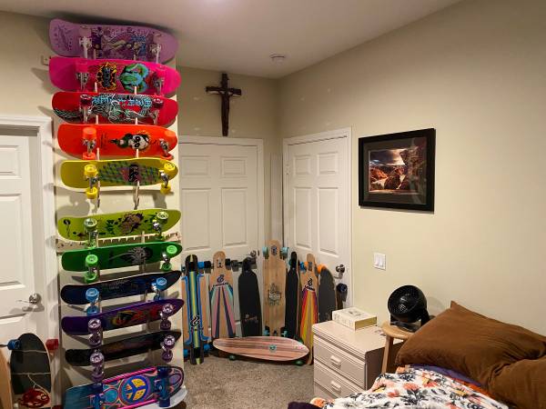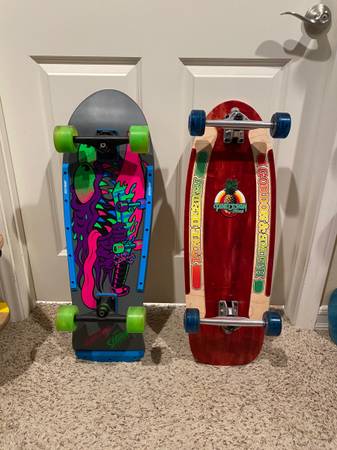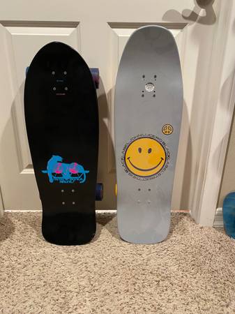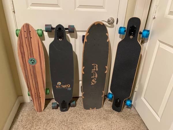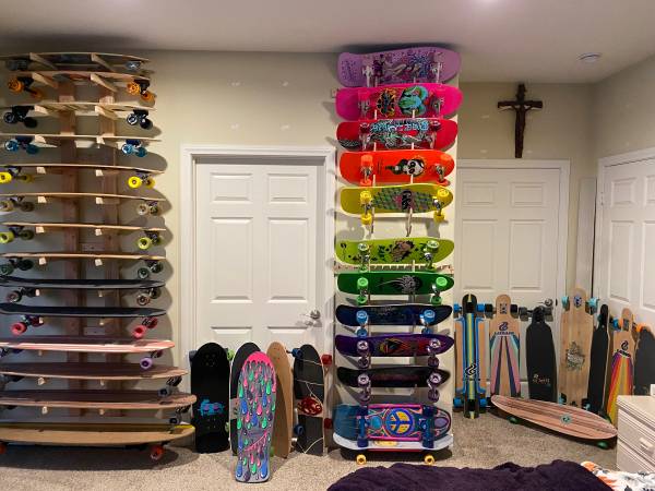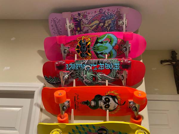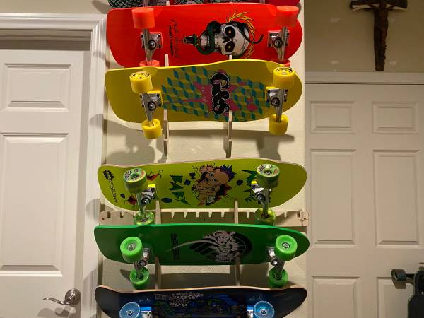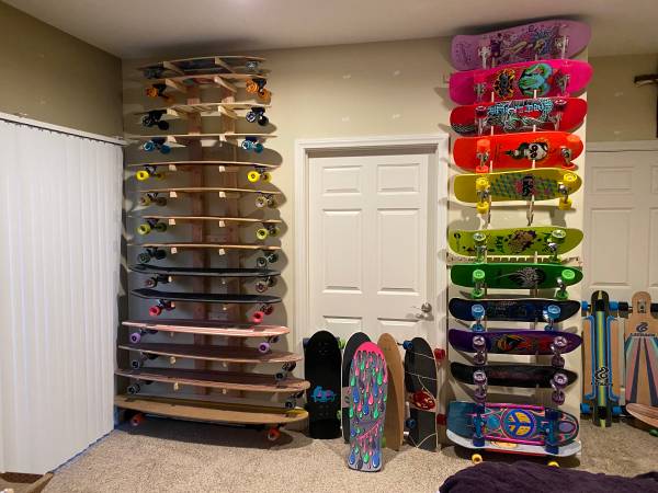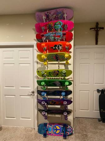 Hi, thanks for stopping by my Awesome Skateboard Collection That I Have For Sale ! I have spent years putting this collection together and nearly 20k invested. . 77 Complete boards, 53 are new and never ridden and 24 are in awesome condition. I have BDS , BDS Super Piggie, Land Yachtz , Sector Nine, Powell Peralta, G&S , Santa Cruz , S M S , Santa Monica Airlines , Kryptonics , Robert August, Mike McGill , John Lucero , Layback, Koastal, Hamboard, Stella by San Diego Speed Shop, Kahuna Creations, Jersey Boards, Bahne , Blind, Lucid, Triple X , and more. Most of my boards I started out by purchasing a deck that I desired and then ordered parts individually to complete each board and to be unique. I like wider trucks, sometimes polished or colored depending on the board, I also like colored wheels when I am trying to match something up and do a color scheme, I also like to use good bearings and hardware kits along with riser pads, most times I user thicker pads due to the larger wheels , and in the end I have a nice board. I have Long Boards , Short Boards, and Cruisers, so sweet to display or ride em. If you have any questions or would like to schedule some time to come check em out, just let me know. I have over 20k invested, it is a wonderful deal for someone to own or part out and make money. show contact info