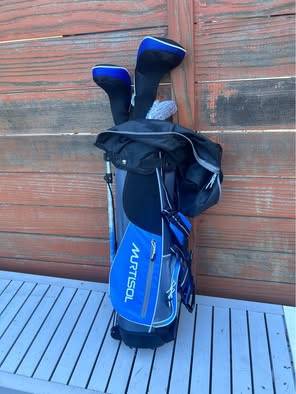 New Open Box. Sells for $130. Our price $95. FINAL SALE! Cart Bag: The golf club set includes the bag for easy storage and convenient transportation. 8-10 Blue club set Driver #1 15 degree: Driver...