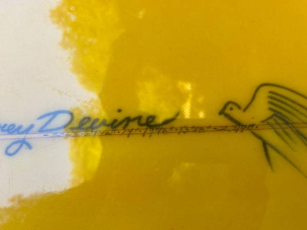 Jeffrey Devine handshaped single fin with glassed on custom fin.