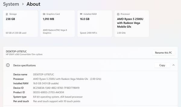 • Processor: AMD Ryzen™ 5 2500U Processor