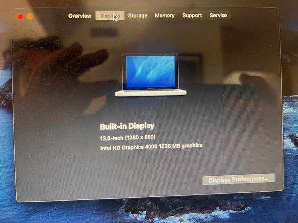 MacBook Pro (13-inch, Mid 2012) macOS Catalina Version 10.15.7 MacBook Pro (13-inch, Mid 2012) Processor 2.5 GHz Dual-Core Intel Core 15 Memory 8 GB 1600 MHz DDR3 Graphics Intel HD Graphics 4000...