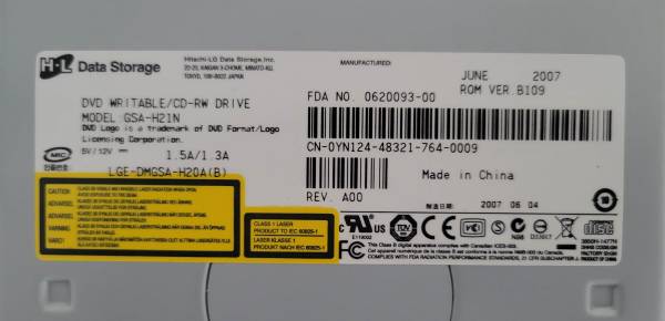 The Hitachi-LG GSA-H21N is a PATA/IDE internal desktop drive capable of writing at 16x for DVD±R, 8x for DVD±RW, and 48x for CD-R, with a 2MB cache and a 5.25-inch form factor. It can read a wide range of formats including DVD±R, DVD±RW, CD-R, and CD-RW, and uses an IDE interface, making it compatible with older desktop computers.