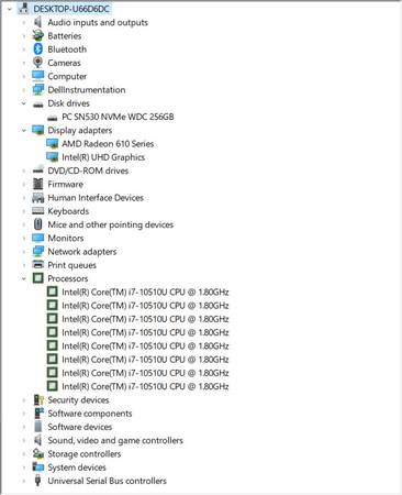 • Processor: Intel Core i7-10510U CPU @ 1.80GHz / Quad Core – 8 Logical Processors