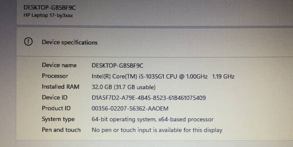 • Processor: - Intel Core i5-1035G1 CPU / 10th Generation