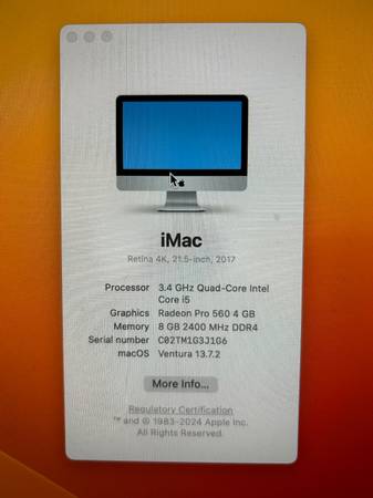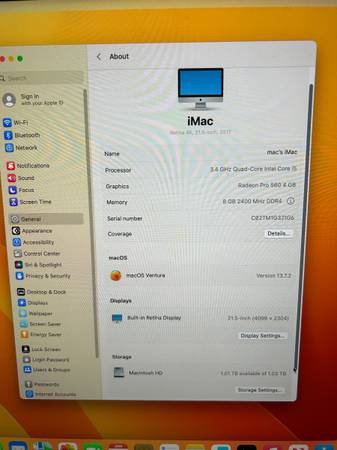 2017 Imac 21" Retina Display 3.4 Quad Core i5 8gb RAM 1tb Fusion Drive Good condition (few scratches as shown in the pictures)