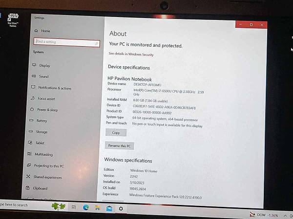 Offered for sale: HP Star Wars Special Edition 15-AN051DX i7-6500U 2.5GHz 8GB RAM 1TB HDD 15.6" HD display. Excellent condition, recently was reset to factory specifications (no prior data), works fine, comes with original power adapter. If interested please contact at show contact info