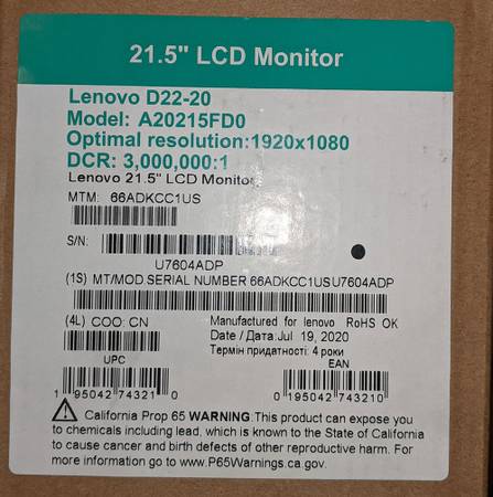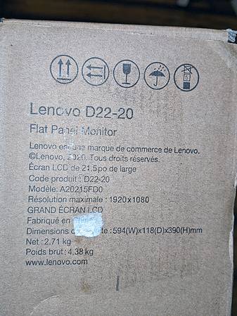 Offered for your consideration: New In Box Lenovo D22-20 21.5" FHD 1920x1080 LED Backlit LCD Monitor 16:9! If interested please contact at .