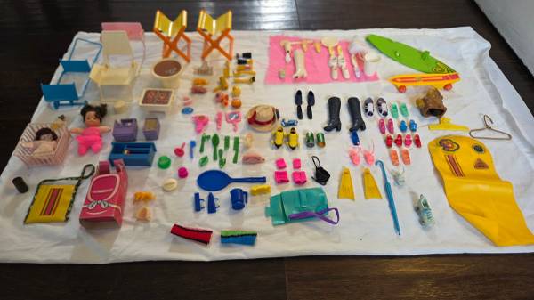 Lot comes with all the extra items listed in photos. includes skate board - helmet, sleeping bag, many shoes and boots, and so much more - over 100 items!
