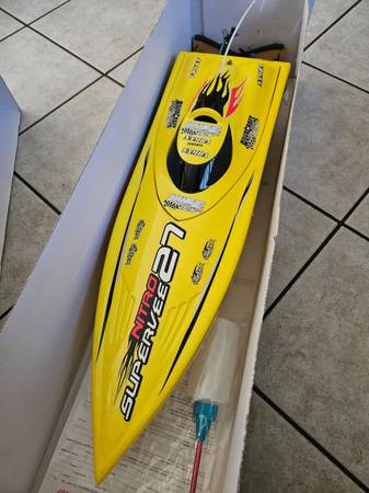 This Aquacraft Supervee 27 rc boat looks to be new in the box.