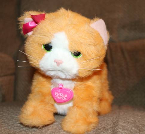 FurrReal Friends - Daisy Plays-With-Me Kitty - responds to you... * Pet her forehead, squeeze her front right paw or press her back * She pounces, jumps, wiggles her paws and makes kitty sounds *...