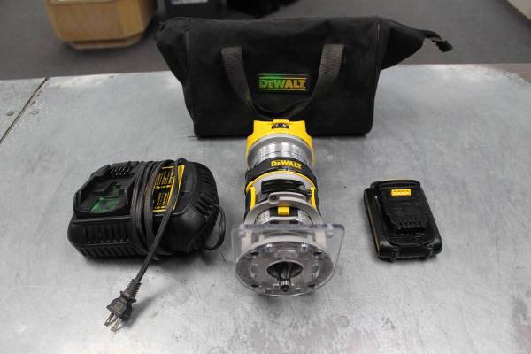 PRE-OWNED DEWALT DCW600 20V MAX XR CORDLESS FIXED BASE COMPACT ROUTER INCLUDES BATTERY, CHARGER & CARRYING BAG STK#18317100 DO NOT EMAIL, PHONE CALLS ONLY (NOT ON SUNDAY)