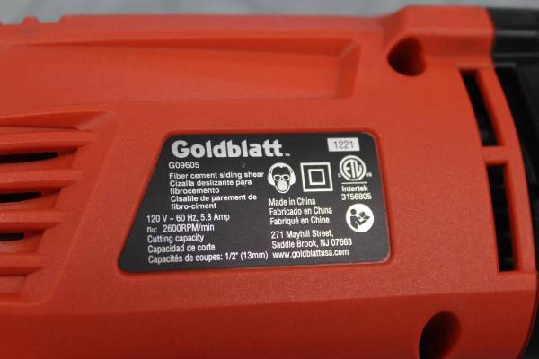 PRE-OWNED GOLDBLATT 1/2 FIBER CEMENT SIDING SHEAR WITH CARRYING CASSE STK#18980400 DO NOT EMAIL, PHONE CALLS ONLY (NOT ON SUNDAY)