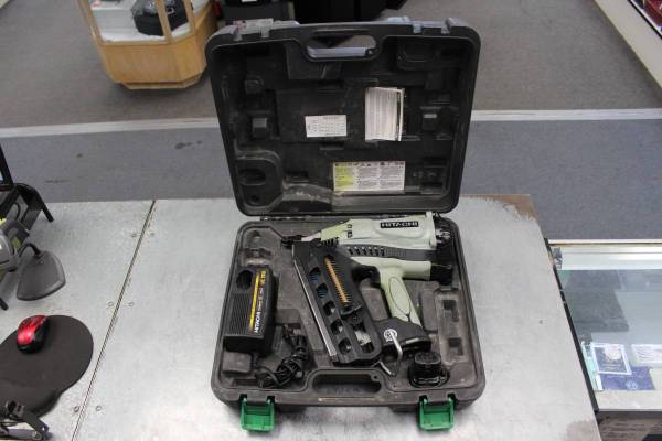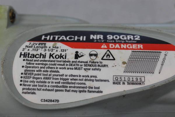 PRE-OWNED HITACHI NR 90GR2 GAS-POWERED ROUND HEAD FRAMING NAILER COMES WITH CHARGER, BATTERY & CASE STK#17701800 DO NOT EMAIL, PHONE CALLS ONLY (NOT ON SUNDAY)