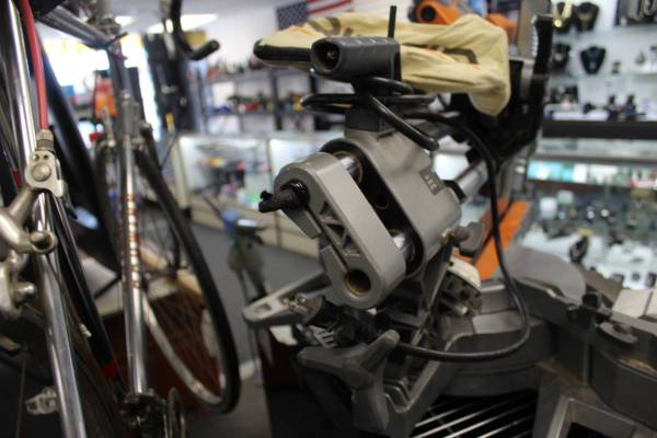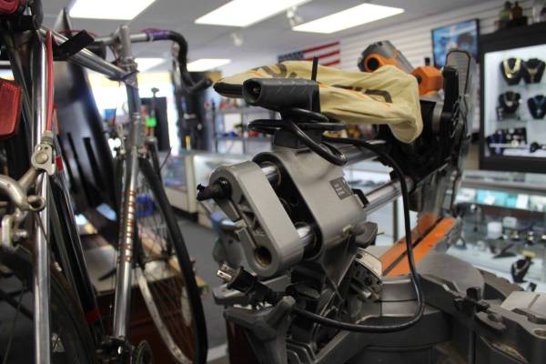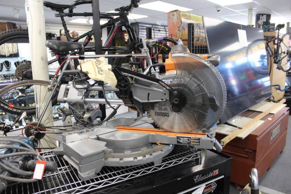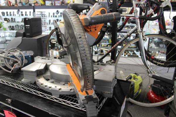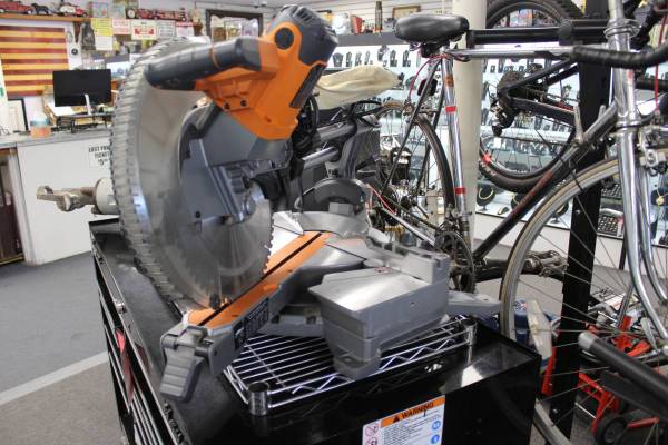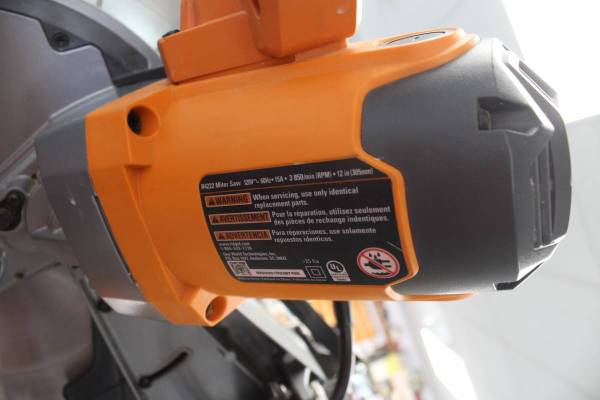 PRE-OWNED RIDGID R4222 15 AMP 12" DUAL BEVEL SLIDING MITER SAW (SPRING FOR LOCKING MECHANISM NOT WORKING) STK#18910600 DO NOT EMAIL, PHONE CALLS ONLY (NOT ON SUNDAY)