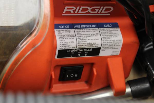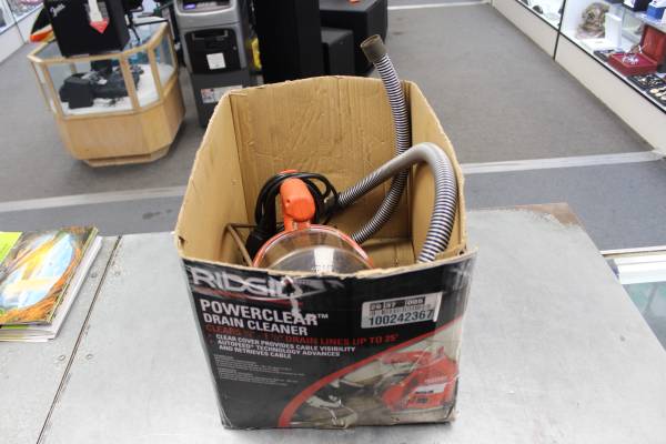 PRE-OWNED RIDGID 55808 POWERCLEAR DRAIN CLEANER DRAIN CAPACITY: 3/4"- 1-1/2", 25" CABLE STK#17588300 DO NOT EMAIL, PHONE CALLS ONLY (NOT ON SUNDAY)
