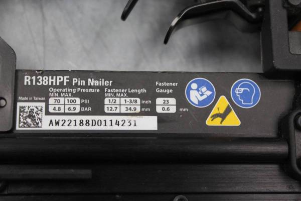 PRE-OWNED RIDGID R138HPF 23GA 1-3/8" PIN NAILER STK#1112800 DO NOT EMAIL, PHONE CALLS ONLY (NOT ON SUNDAY)