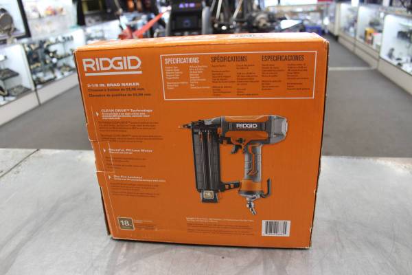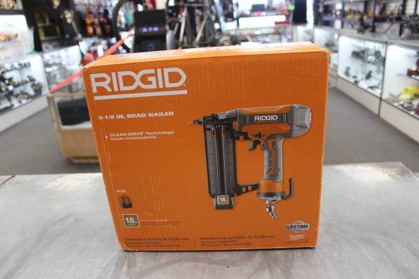 PRE-OWNED RIDGID R213BNF3 18GA 2-1/8" PNEUMATIC BRAD NAILER STK #18965300 DO NOT EMAIL, PHONE CALLS ONLY (NOT ON SUNDAY)