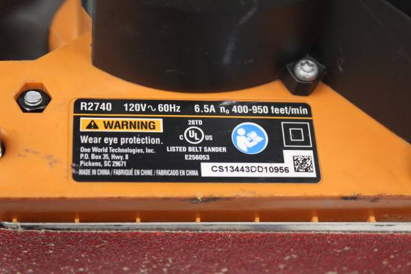 PRE-OWNED RIDGID R2740 CORDED VARIABLE SPEED BELT SANDER STK#18375900 DO NOT EMAIL, PHONE CALLS ONLY (NOT ON SUNDAY)