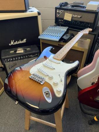 Excellent condition, no case. Setup well and sounds amazing. 2021 MIM Strat authentic 100% genuine, beautiful instrument. feel free to try it out before you buy of course! :) I actually love this...