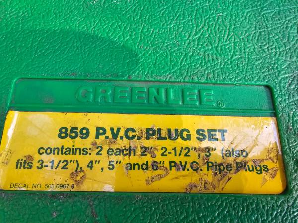 Greenlee 859 12 Pieces PVC Plug Set With Case From 2" to 6" Full Set - $490 (Glendale)