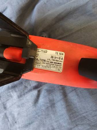 Hilti TE10A 900 RPM / 36V / 9A Cordless Rotary Hammer Drill With Handle (Tool Only) The Drill Works Great. The item is in good, preowned condition - Please see the pictures for details. Sold as...