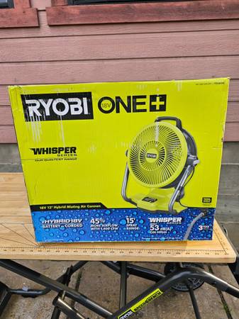 Ryobi ONE+ PCL850B 18V Cordless Hybrid WHISPER SERIES 12" Misting Air Cannon Fan (Tool Only)