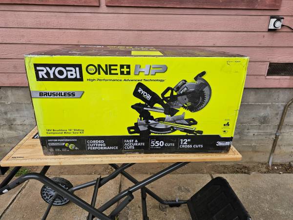 Ryobi ONE+ HP PBLMS01K 18V Brushless Cordless 10" Sliding Compound Miter Saw Kit with 4.0 Ah Battery and Charger