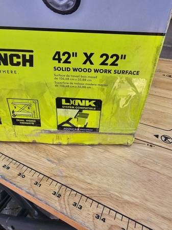 Ryobi STM202 SPEED BENCH Mobile Workstation 42" x 22" Solid Wood Work Surface Brand New. The box can show some signs of shelf life - Please see the pictures. The box's content is: the Bench Only -...
